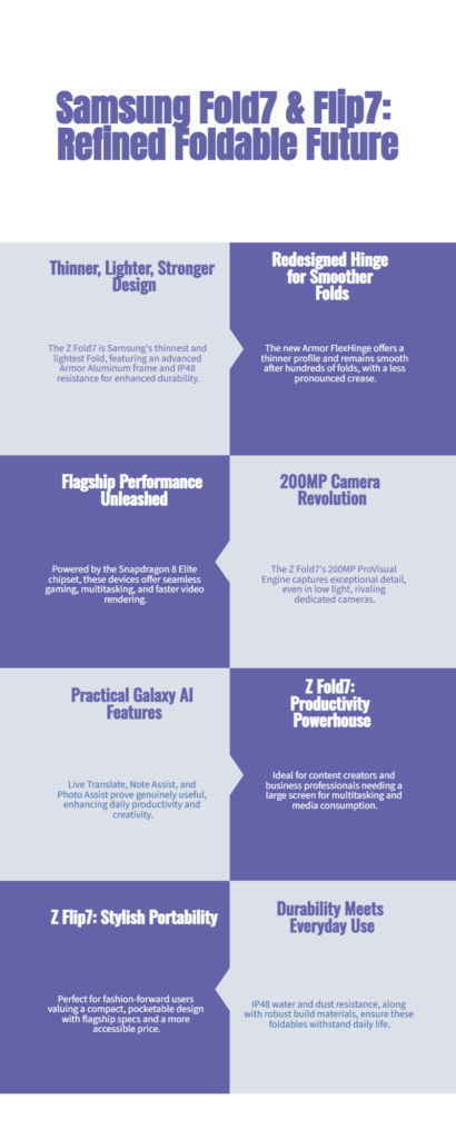 After spending two intensive weeks with Samsung’s latest foldable flagships—the Galaxy Z Fold7 and Z Flip7—I can confidently say these devices represent Samsung’s most refined approach to foldable technology yet. Released in July 2025, these phones address many criticisms leveled at previous generations while introducing genuinely useful innovations.